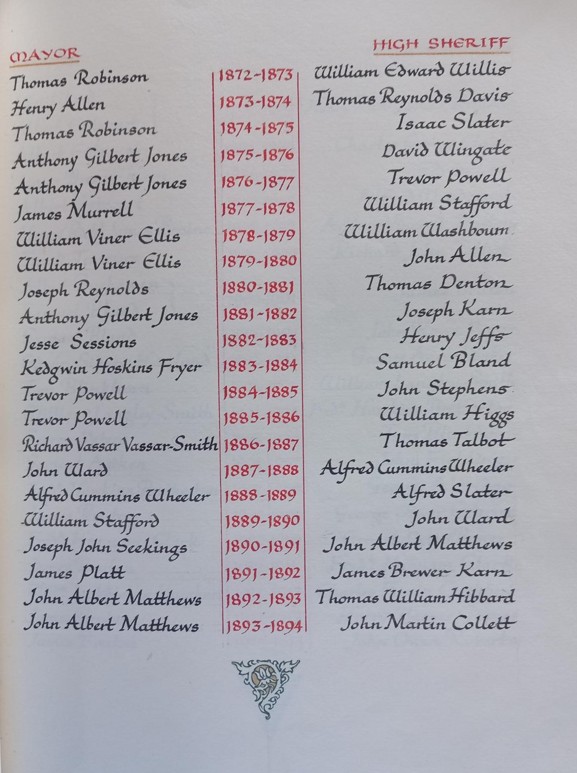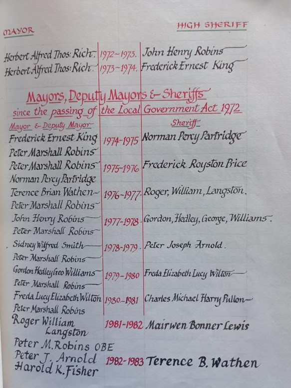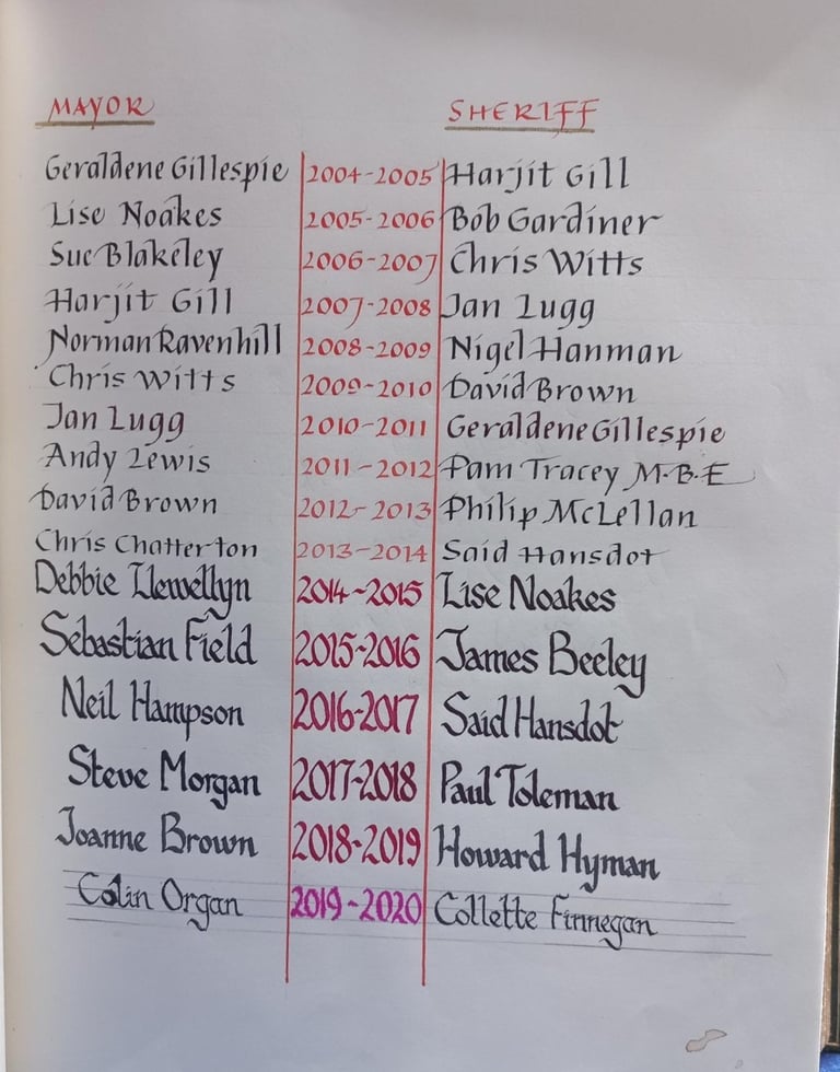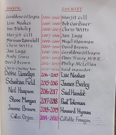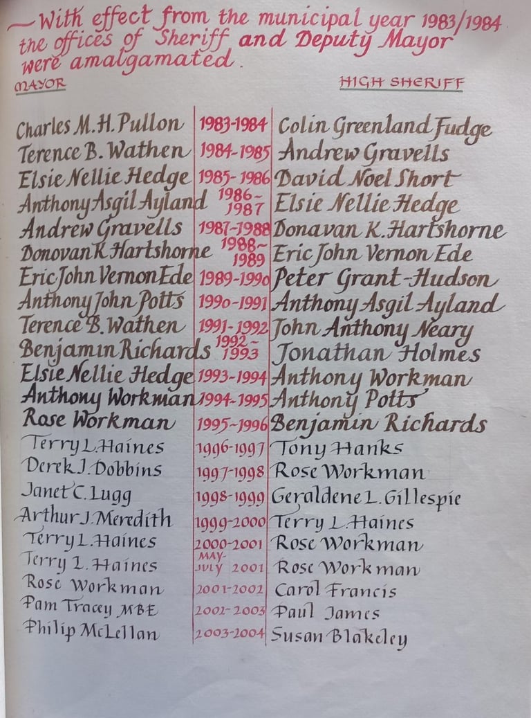 Historic record of past Sheriffs as transcribed in the City Bible